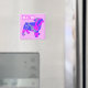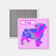 Silueta de perro de pug loco rosa caliente y azul lindo digital abstracto amante de los perros. Ponga cualquier nombre o iniciales en el espacio provisto en el imán rosa.