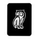Icono de búho. Símbolo de sabiduría y riqueza. Diseño transparente blanco adecuado para objetos oscuros.