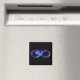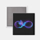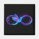 Símbolo de infinito violeta y brillante con colibrí azul sobre fondo negro. Neón.