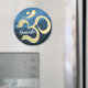 Yoga Fitness Studio / Instructor de Meditación / Entrenador personal / Coach de vida / Healer / Reiki Master / Massage Therapy Magnet Plantillas. Símbolo moderno de Om de Relieve metalizado dorado Faux sobre fondo de patrón de onda azul oscuro.
