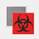 Símbolo negro de riesgo biológico en un color rojo neón.