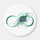 El símbolo del infinito con una pluma de pavo real brillante, verde y artística sobre un fondo blanco. Estilo tatuaje.