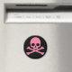 These graphic tees and other items are adorned with a simple pink skull and crossbones.