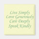 Vivir Simplemente, Amar Generosamente, Cuidar Profundamente, Hablar Amablemente. Palabras para vivir todos los días. Diseñado para un fondo verde