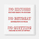 Sin Retirada. No Renunciar. Excelentes palabras motivacionales para cualquier área de la vida. Gimnasio, pérdida de peso, ventas, educación, deportes.