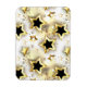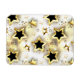 Patrón inexorable de joyería, oro y estrellas negras sobre fondo texturado claro. Estrella dorada.