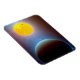 La concepción de este artista representa el sistema de estrellas Kepler-10, situado a unos 560 años luz de distancia, cerca de las constelaciones de Cygnus y Lyra. Kepler ha descubierto dos planetas alrededor de esta estrella. Kepler-10b es, hasta la fecha, el exoplaneta rocoso más pequeño conocido, o planeta fuera de nuestro sistema solar (punto oscuro contra el sol amarillo). Kepler-10c es el objeto de primer plano más grande.