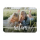 Imán fotográfico moderno con una sola foto dentro de un marco blanco y el guión de tipografía ''hermanas'' en letras escritas a mano de moda. Personalice más con los nombres.