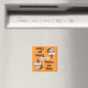 La cera roja gotea hacia abajo para una cabeza de cráneo con un murciélago en la luna con palabras que dicen que los platos están sucios, los platos están limpios hace un bonito imán de lavavajillas de halloween.