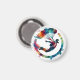 Un hermoso diseño de imán de acuarela circular de un paracaídas con colores vibrantes y salpicaduras de acuarela que le dan una poderosa sensación de aventura y libertad.