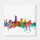 Huella de arte acuarela del horizonte de Cleveland, Ohio, Estados Unidos