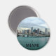 Fotografía paisajista del horizonte de Miami Florida vista desde el agua. Un barco está en primer plano. En el fondo está el horizonte de la ciudad y el puente contra un cielo nublado y la puesta del sol. Excelente Miami, Florida, idea de regalo para los que aman Miami, Florida, los horizontes, la playa, los océanos o los viajes. También hermoso recuerdo de Miami, Florida o regalo para alguien que se dirigía a Florida de vacaciones.