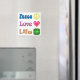 Stick this magnet someplace where you want to promote your pro-life beliefs. Great for a dorm room, locker, bedroom, home office, kitchen, or more.