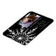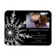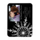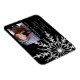 Personalizar el festivo Snowflake en la Boda Negra de Invierno Salve el Magnet Flexible de Fecha con los nombres personales de la pareja, foto y fecha de la ceremonia de matrimonio para anunciar sus nupcias temáticas de diciembre, enero o febrero. Este elegante matrimonio personalizado en invierno mantiene el imán de fecha con un intrincado copo de nieve blanco biselado en falso adornando la esquina con un fondo negro.