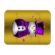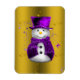Un bonito y colorido diseño de Navidades dorados con adorables hombres de nieve sobre oro, vestidos con sombreros y chalecos de terciopelo violeta, rodeados de estrellas doradas para dar regalos a tus Navidades o decoración de casa de los Navidades con un toque caprichoso y elegante esta temporada.