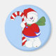 Este encantador muñeco de nieve en Santa hat sostiene un gran candiano en este adorable diseño vacacional.