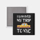 El diseño gracioso de un taxi amarillo dice "Sobreviví a mi viaje a NYC"