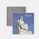 Magnet con la imagen de la estatua del antiguo filósofo griego Sócrates, ubicado fuera de la Academia de Artes de Atenas en Grecia.