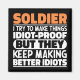 Divertido Soldado Dice "Soldado Intento Hacer Que Las Cosas Sean Una Prueba Idiota Pero Siguen Haciendo Mejores Idiotas". Agarra este diseño de Funny Soldier como un regalo gracioso para una mamá, papá o amigo impresionante.