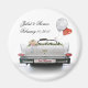 Antiguo reloj blanco convertible decorado con flores y globos, con el texto "Just Married". Recordar al texto personalizar