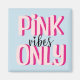 Estilo retro diseño de texto "Sólo con vibraciones rosadas" con letras rosadas y negras para todo aquel que ame el color rosa