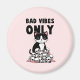 Envía tu lado atrevido y suavizado con este imán impactante con un gato encarnizado rodeado de cráneos. La audaz frase 'Sólo malas vibraciones' agrega un giro rebelde, perfecto para los amantes de los gatos que adoptan una estética oscura y gótica. Este diseño único es ideal para los amantes de combinar el encanto felino con el arte atrevido y creativo.