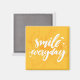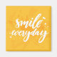 Sonríe todos los días. Cita inspiradora positiva sobre fondo de color amarillo. Letras vectoriales para posters, tarjetas y contenido de medios sociales | Bigstock® - Todos los derechos reservados.