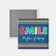 Sonrisa colorida, diseño de texto gratuito con decoración de rayas sobre fondo azul