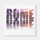 Texto de Roma compuesto por el Coliseo sobre fondo negro con reflexión de texto en agua.