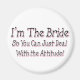 Soy la Novia, Así que Puedes Lidiar con la Actitud Este diseño único rosa y negro es un gran regalo para Novias. Un regalo perfecto para la ducha de novia. Si conoces a una Novia con Actitud, este divertido dicho de novia sería un regalo perfecto para ella. Este Lindo dicho para Novias seguramente pondrá una sonrisa en el rostro de la dama especial que entiende el humor de Novia.