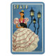 Imagen de dominio público de un poster de viajes vintage. Utilizando la función "personalizar", puede añadir su propio texto si lo desea.