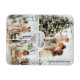 Crea un imán para Navidades de fotos hermoso con un corazón plateado, nieve, estrellas y brillantes Navidades luces mágicas.