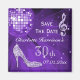 Elegante, glamoroso cumpleaños número 30 / trigésimo cumpleaños, salven los imanes de fecha. Glamour y glitz a la moda Ahorra las fechas para las celebraciones de su 30º/Treinta cumpleaños. Hermoso, deslumbrante plata chupa diamantes joyas joyas de la imagen de la nota musical, divertida bola de espejo de disco retro púrpura/lila/lavanda y estilete purpurinoso plateado de tacón alto de la imagen del zapato de moda en un fondo de moda morado/lilac/lavanda. Un bonito bonito, elegante, de moda, elegante, ahorra el imán de citas para las mujeres. A las mujeres les encantará este diseño genial, divertido, divertido y jovial por su música glamurosa y su baile 30/30 fiestas.