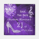 Elegante, glamoroso 21º cumpleaños / 21º cumpleaños salva los imanes de fecha. Glamour y glitz a la moda Ahorra las fechas para las celebraciones de su fiesta de cumpleaños 21/21. Hermoso, deslumbrante plata chupa diamantes joyas joyas de la imagen de la nota musical, divertida bola de espejo de disco retro púrpura/lila/lavanda y estilete purpurinoso plateado de tacón alto de la imagen del zapato de moda en un fondo de moda morado/lilac/lavanda. Un bonito bonito, elegante, de moda, elegante, ahorra el imán de citas para las mujeres. A las mujeres les encantará este diseño genial, divertido, divertido y jovial por su música glamurosa y sus fiestas bailarinas 21/21.
