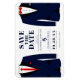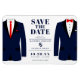 Que todos sepan que ustedes dos se han establecido en una fecha para su boda con este moderno salven la tarjeta de fecha con dos trajes de la marina. Personalice agregando sus nombres, fecha y ubicación de boda.