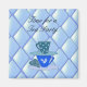 Un diseño divertido con un fondo de diamante azul con coloridas teacups apiladas. ¡Preparado para un fiesta de té!