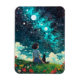 En esta encantadora obra de arte, una chica y su gato se sientan juntos en un colorido campo de flores, contemplando un fascinante cielo nocturno lleno de estrellas y lunas múltiples. La escena refleja una sensación de asombro y tranquilidad, ya que la exhibición celeste sobre ellas ilumina el paisaje de abajo. Los colores vivos de las flores contrastan con el color profundo y cósmico del cielo, creando un ambiente de ensueño y serenidad.
