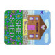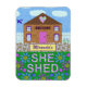 La "She Shed" es la respuesta de la mujer a la Cueva Man. Este original diseño de imán flexible es para mujeres que aman escapar a su propio refugio en el patio trasero. Tiene una imagen de un bonito cobertizo de madera, una valla blanca de piquete, adoquines, un pájaro y un jardín de flores. Las palabras "She Shed" también tienen un patrón de flores. Añade fácilmente tu nombre en morado a la pancarta amarilla en el medio. Celebra tu Shed She con este diseño personalizado.