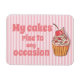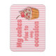Imán de rayas rosa pastel dulce con una cita "Mis pasteles llegan a cualquier ocasión" y un delicioso ilustracion de quequitos de cerezo.