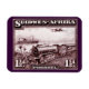 Un sello 1/2d de Sudáfrica 1937 con un tren ferroviario, un buque de vapor y un avión - todos los tipos de transporte usados en la entrega de correo a esta región de África que ahora es la nación de Namibia.