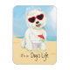 ¡Es la vida de un perro! Estar fresco y celebrar los días de verano del perro con este lindo Terrier Blanco de la Montaña Occidental usando gafas de sol y relajándose con una bebida.