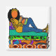 Sunflower Afrocentric Reader made from African fabric illustration of afro woman reading a book sitting on top and couch made from books. Cute Afrocentric gift for black history, Juneteenth, and Kwanzaa.