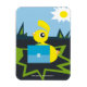 Diseño original para los niños, lindo y gracioso conejito soleado caminando a la escuela en el bosque oscuro.
