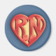 emblema de superheroína para enfermeras; borde en forma de corazón con letras "RN". Gráfico rojo/amarillo, camisetas, sudaderas, tarjetas, regalos.