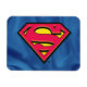 Una versión biselada del logotipo clásico de Superman S-Shield sobre una textura de tela azul.