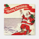 Este imán de Navidades pintoresco cuenta con un ilustracion vintage de Santa Claus en una tabla de surf. ¡El imán perfecto para los amantes de Santa Claus y todo lo retro!