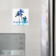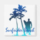 Este icono clásico de surf cuenta con un surfista de palangre que da a los caminos de las palmeras de Surfrider Beach. Este diseño combina colores vivos. Estos diseños se presentan en varios colores.