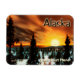 Invierno en la taiga ártica. Con el sol bajo en el horizonte la nieve brilla y el cielo se quema naranja y amarillo. El texto que dice "Alaska" también aparece y usted puede borrar fácilmente si lo desea. Añade tu propio texto adicional.
