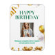 Tarjeta de cumpleaños de los globos de oro con regalos y cintas