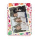Tarjeta de El día de San Valentín magnética para abuelos, de los nietos con una gran plantilla de fotos. Las tarjetas dobladas tienen dos líneas de texto personalizado en el marco fotográfico anglonizado. Rosa pálido con una dispersión de corazones coloridos "pintados" en el fondo. Personaliza con nombres, "Feliz Día de San Valentín a Nana y Pops" es la muestra. Una foto horizontal (horizontal) funciona mejor. El estilo de letra es casual y está escrito a mano. La tarjeta viene en dos tamaños.